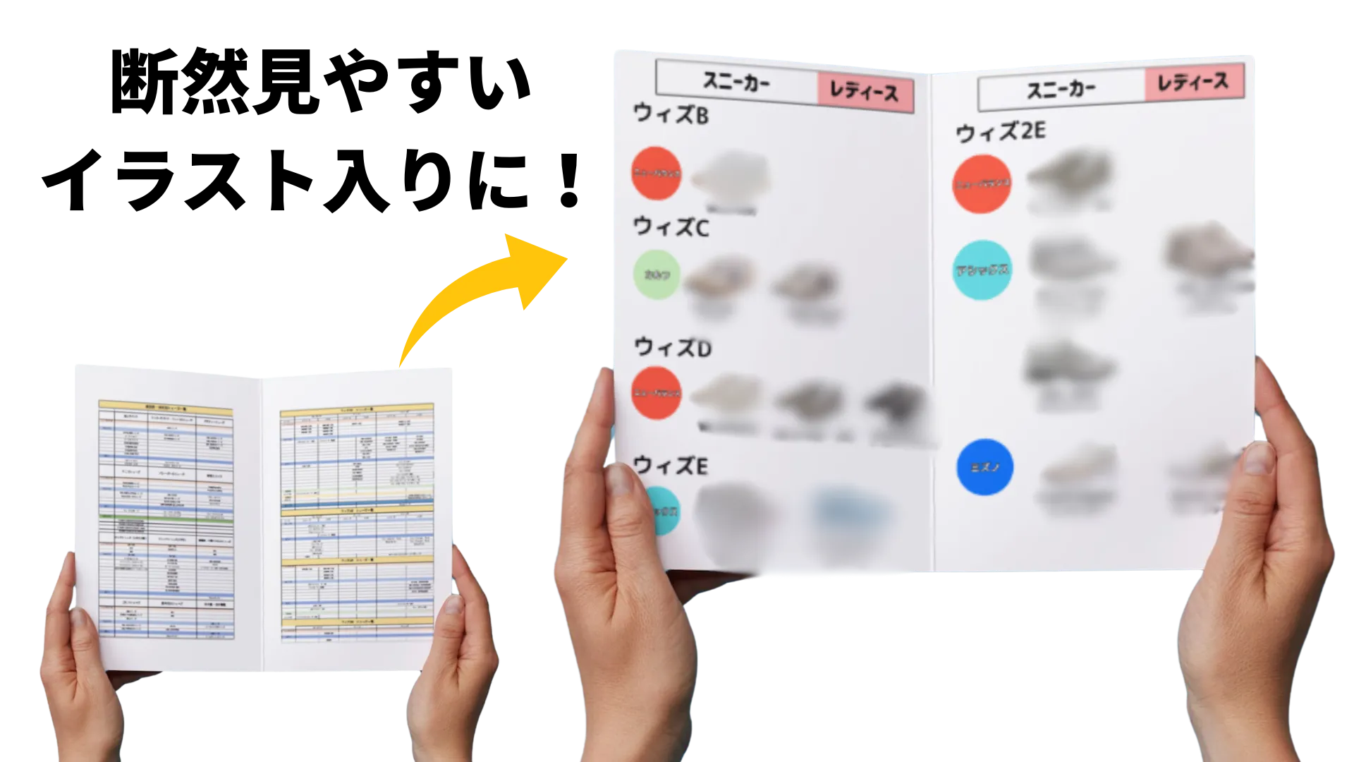 従来はシューズのリストを品番だけで表記していました。2024年版は、更に見やすくするためにすべてのシューズの写真も掲載。そう、カタログのように患者さんと一緒にシューズを選べるようになったんです!これが実現したことで、圧倒的に患者さんのシューズ選びが楽になります。そして、患者さんも写真を見れるので、納得してシューズを決めることができるんです。
